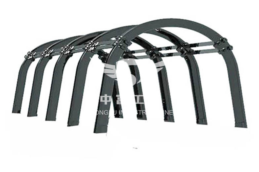 U型钢环形可缩性支架又称封闭形可缩性支架,支架各节连接后形成一个封闭的环形,故因此而得名。封闭形支架与拱形、梯形支架不同处就在于其底部是封闭的,因此带来两个突出的优点:由于支架本身是一个闭合体,其承载能力较拱形、梯形支架有较大提高,支架变形损坏小;由于支架底部封闭,对巷道底鼓有良好的控制作用,对巷道两帮也有较强的控制能力。